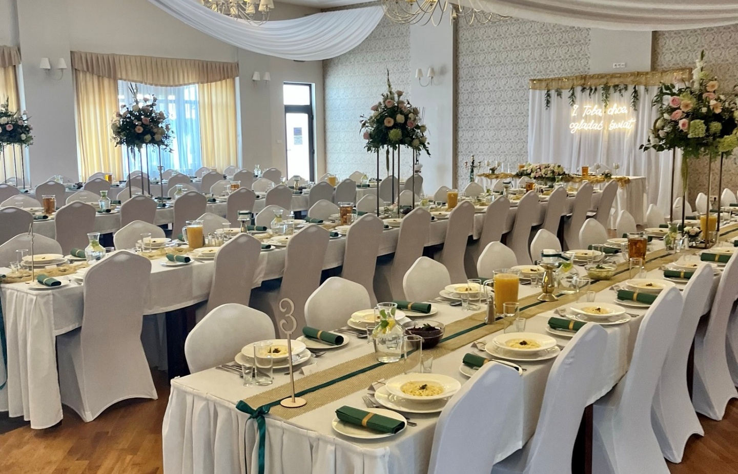 Oddajemy Państwu we władanie obiekt nowy i nowoczesny, ale zapewniamy, iż w organizacji tak ważnych wydarzeń nie jesteśmy nowicjuszami. Dzięki wieloletniemu doświadczeniu możemy zagwarantować Państwu profesjonalne wsparcie w kompleksowej organizacji Państwa wesela. Nasz personel z przyjemnością zadba o każdy szczegół uroczystości, tak aby Młodej Parze i jej gościom pozostała tylko beztroska zabawa.